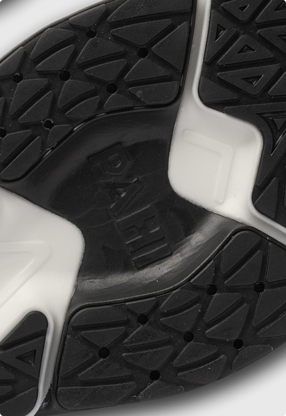 Easy in & out shoe-horn heel counter combined with triple lock elastic no-tie lace system for effortless slip on wear.